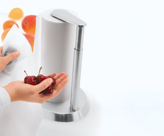 Spielend leicht mit einer Hand Küchentücher abreißen und Rollen auswechseln. Passt sich automatisch der Papierrollenhöhe an.
